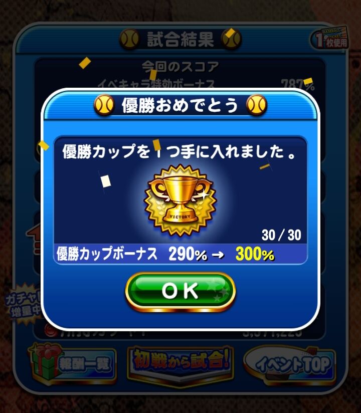 優勝カップが複数枚以降する前に20個溜まりそうや