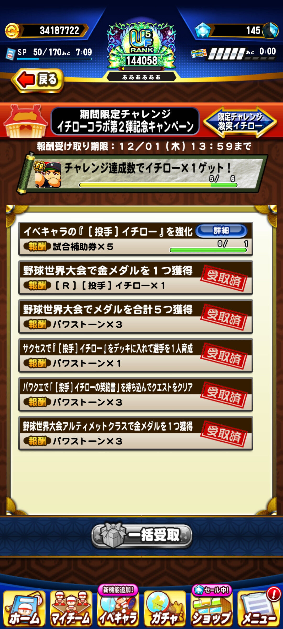 ニキビら忘れずにニチローチャレンジのSRイチロー貰っとくんやで